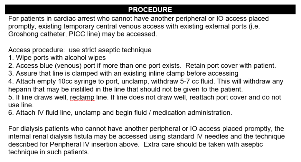 VASCULAR ACCESS – SPECIAL SITUATIONS (PATIENT IN EXTREMIS) Share this: Click to share on X (Opens in new window) X Click to share on Facebook (Opens in new window) Facebook Like Loading...